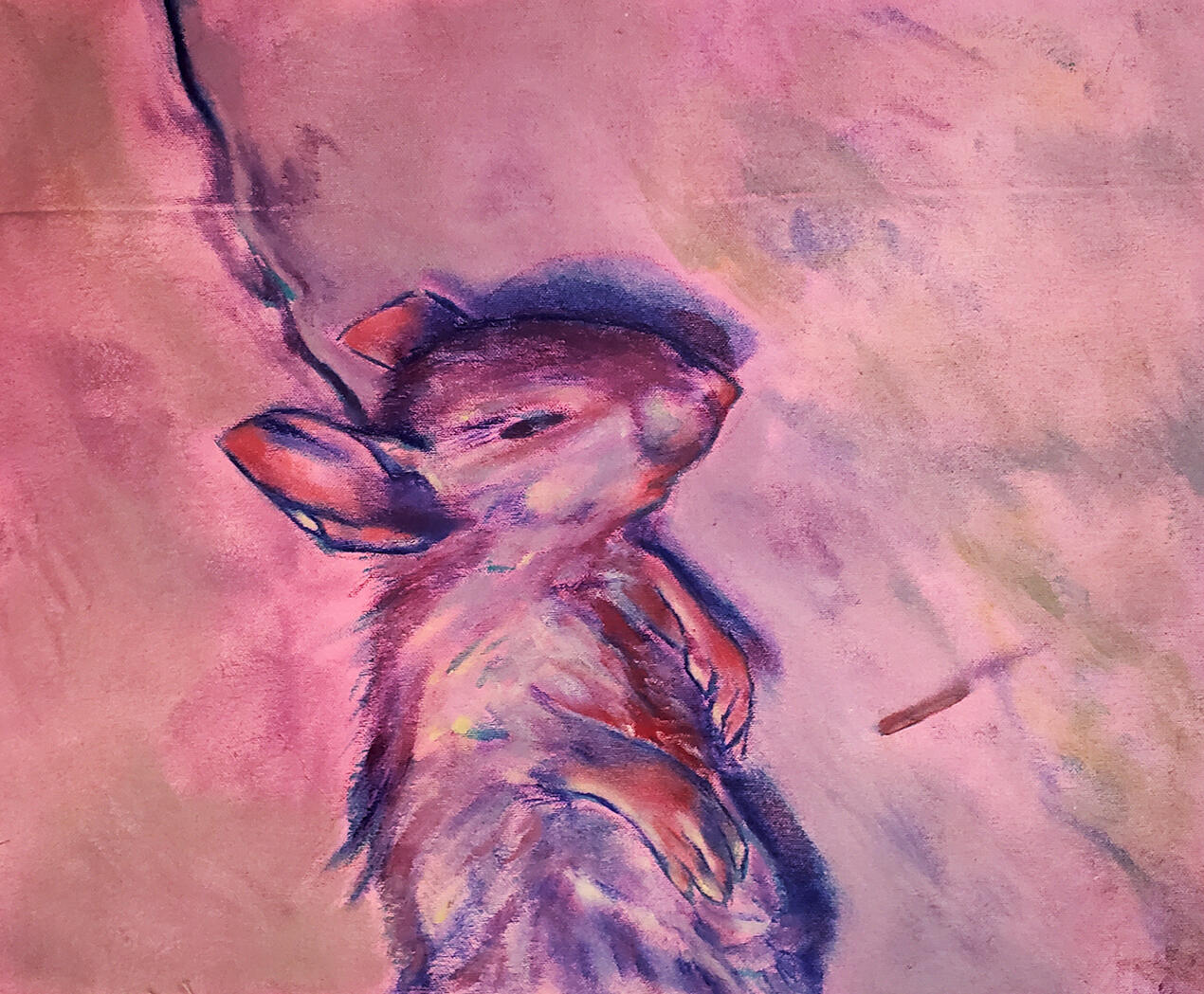 My work primarily deals with the exploration of my own identity, sexuality, and my relationship to both myself and others in the world as I navigate it as a trans-man. My focus is in creating an open form of language through the visuals in my artwork, in order to bridge communication between the viewer and myself. I intend to allow the viewer to see what it is like to live as an ‘object’ in current climates, whether it be regarding looking at oneself or how others view them. My work is intimate, large-scale, and contains symbolic motifs that are often hidden inside the poses, composition, or smaller details. I explore and utilize materials as a way of navigating identity, vulnerability in identity and the impermanence of the body.